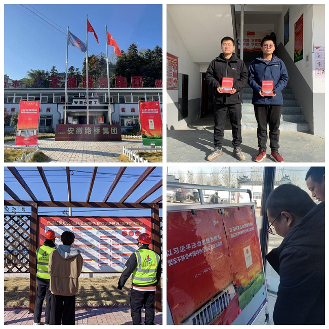 “齊頭并進”,《憲法》多樣宣傳營造法治氛圍。公司在機關(guān)辦公區(qū)和各項目駐地通過張貼海報、懸掛橫幅等方式進行憲法宣傳。部分項目還主動和當?shù)孛癖娐?lián)動,給村民宣傳憲法知識,發(fā)放普法畫冊,讓大家真切感受到憲法的莊嚴與神圣,引導大家積極學習憲法等法律知識,進一步樹立法治觀念,切實提高尊法學法守法用法的自覺性和主動性。