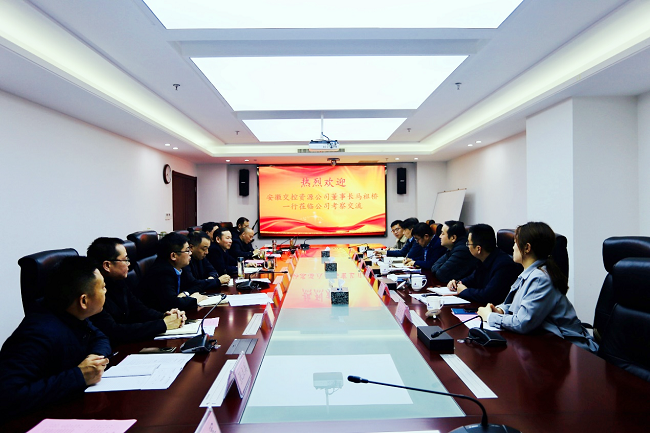 3月25日下午,安徽交控資源公司董事長、總經(jīng)理馬祖橋一行來公司考察交流,公司黨委書記、董事長盛明宏接待了馬祖橋一行,并于9樓會議室召開座談會。