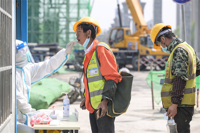 “您好,請(qǐng)出示您的健康碼和行程碼”走進(jìn)項(xiàng)目現(xiàn)場(chǎng),項(xiàng)目部嚴(yán)格落實(shí)項(xiàng)目封閉式管理和單口進(jìn)出制度。項(xiàng)目部實(shí)行施工現(xiàn)場(chǎng)分區(qū)管理,各進(jìn)出口大門配備疫情專管員,每日組織疫情防控專員對(duì)全體勞務(wù)人員進(jìn)行雙碼核查、測(cè)溫、登記,對(duì)于黃碼及行程碼帶“*”人員,及時(shí)上報(bào)社區(qū),與屬地及主管單位形成聯(lián)動(dòng)。同時(shí),安排專人每日對(duì)工人生活區(qū)、辦公區(qū)、宿舍區(qū)等人員聚集場(chǎng)所進(jìn)行消殺。此外,積極響應(yīng)政府號(hào)召,每周組織兩次全員核酸檢測(cè),確保疫情防控封閉管理、不留死角。