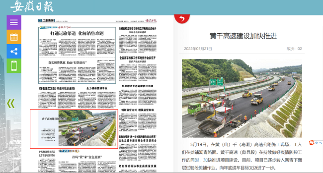 近日,《安徽日?qǐng)?bào)》、安徽網(wǎng)絡(luò)廣播電視臺(tái)、黃山臺(tái)民生熱線(xiàn)等多家主流媒體《以黃千高速歙縣段進(jìn)入路面瀝青攤鋪施工階段》為題,重點(diǎn)報(bào)道路橋集團(tuán)廣大建設(shè)者們鉚足干勁,搶抓“黃金季”,全力推進(jìn)黃千高速項(xiàng)目建設(shè)。